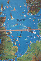 One of the most famous games was centred on Günther Prien, and specifically his successful mission to Scapa Flow which had captured the public imagination. Called Mit "Prien" gegen England ('with "Prien" against England'), players put themselves in the position of the famous skipper of U-47, where they had to plot their path across the board to their mission objective while trying to negotiate a number of hazards and avoid numerous threats and attacks. It was a very simple game, and very similar to Snakes and Ladders where players used metal pieces representing submarines.